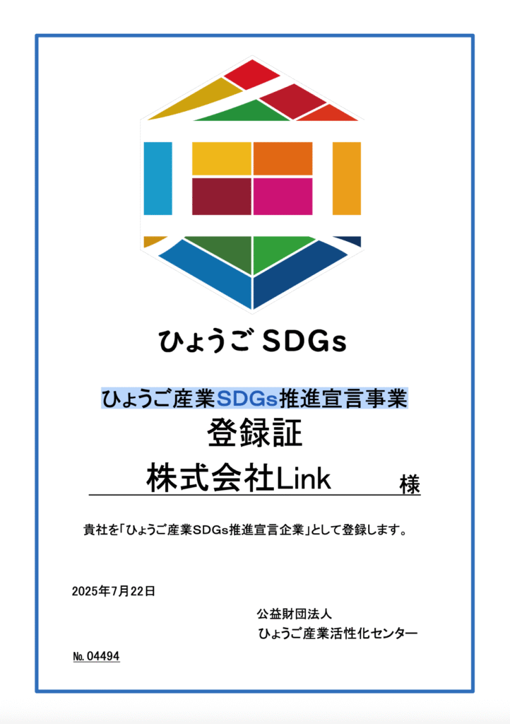 ひょうご産業SDGs推進宣言事業 認定されました。