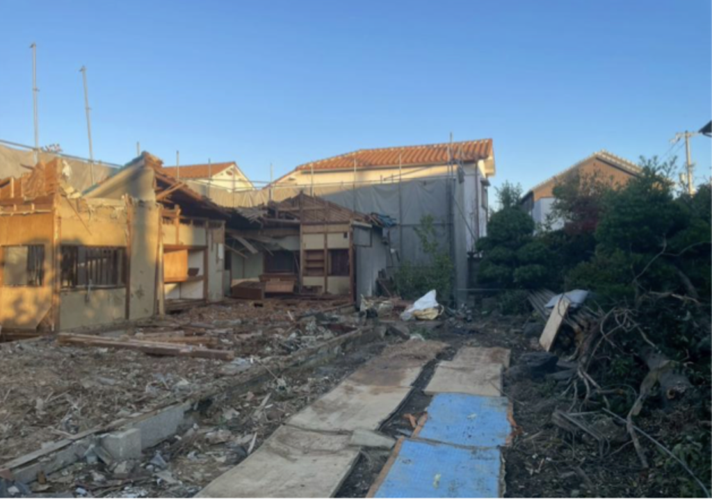 本工事では、木造2階建て住宅1棟、鉄骨造2階建て建物1棟、ならびに庭園の解体・撤去工事を行いました。